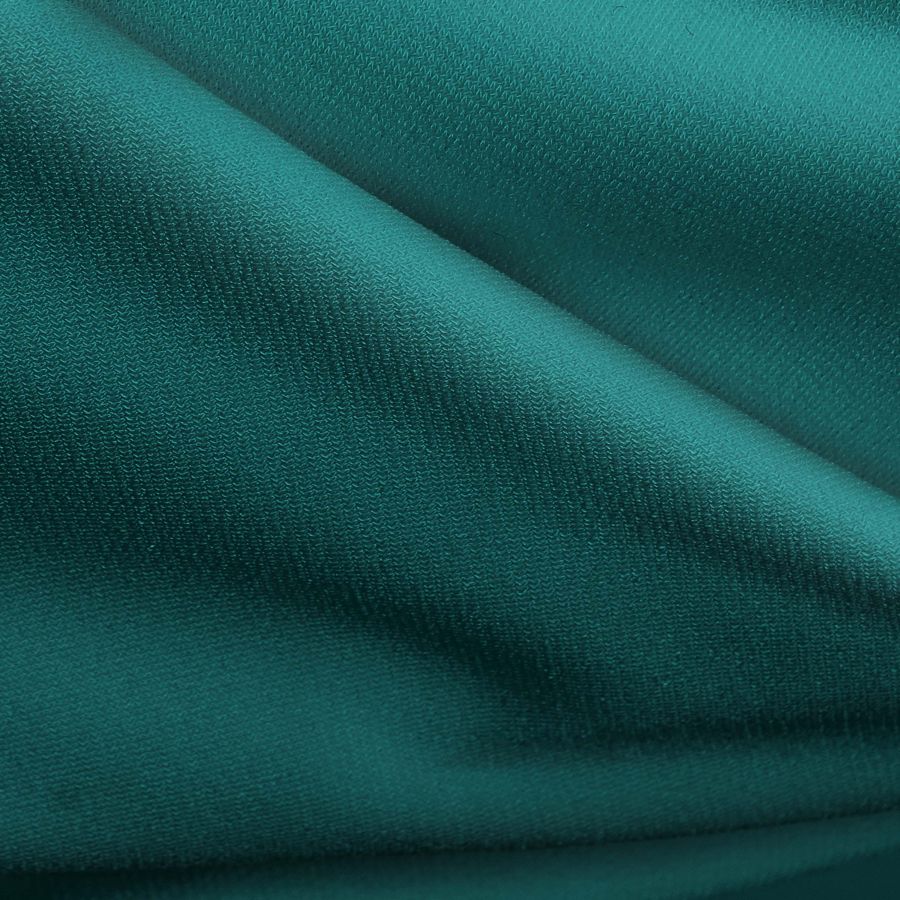 La tela base es un Punto Sintético con Spandex - Support, con una composición de 95% POLIÉSTER y 5% ELASTANO. Tiene un gramaje de 237 gr/m2 y un ancho de 152 cm. El color liso impreso es un Verde azulado medio, con un CMYK de 89 40 56 40. Este color se caracteriza por ser fresco, tranquilo y elegante, y combina perfectamente con colores neutros como el blanco, negro y gris, así como con otros tonos verdes y azules. Es importante destacar que la tela está impresa con el color liso a una sola cara por impresión digital textil, lo que significa que no afecta la parte trasera de la tela.