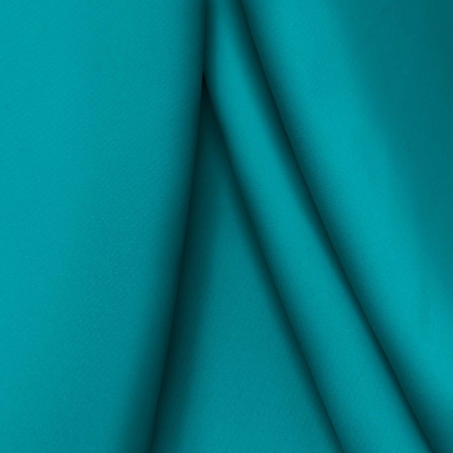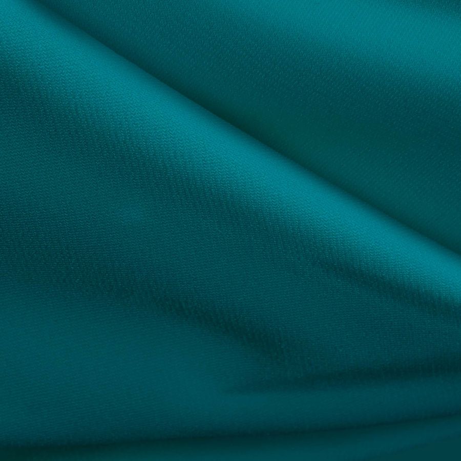 La tela base es un Punto Sintético con Spandex - Support, con una composición de 95% poliéster y 5% elastano, con un gramaje de 237 gr/m2 y un ancho de 152 cm. El color liso impreso es una combinación de verde y verde azulado, con las siguientes proporciones CMYK: 85 31 42 17. Este color secundario se puede describir como un tono fresco y natural, que combina muy bien con otros tonos de la misma gama, como el azul y el gris claro.