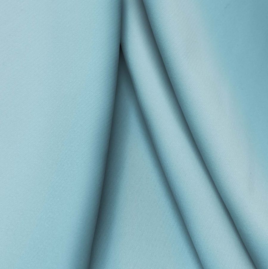 La tela base es el Punto Sintético con Spandex - Support, de color blanco y con un gramaje de 237 gr/m2, con un ancho de 152 cm y una composición de 95% poliéster y 5% elastano. El color liso impreso es de un tono Azul cielo, con un CMYK de 52-11-16-0 y es una sola cara por impresión digital textil. Este tono Azul cielo es un color que transmite tranquilidad, serenidad y armonía, y se combina en particular con tonos neutros como el blanco, gris y beige.