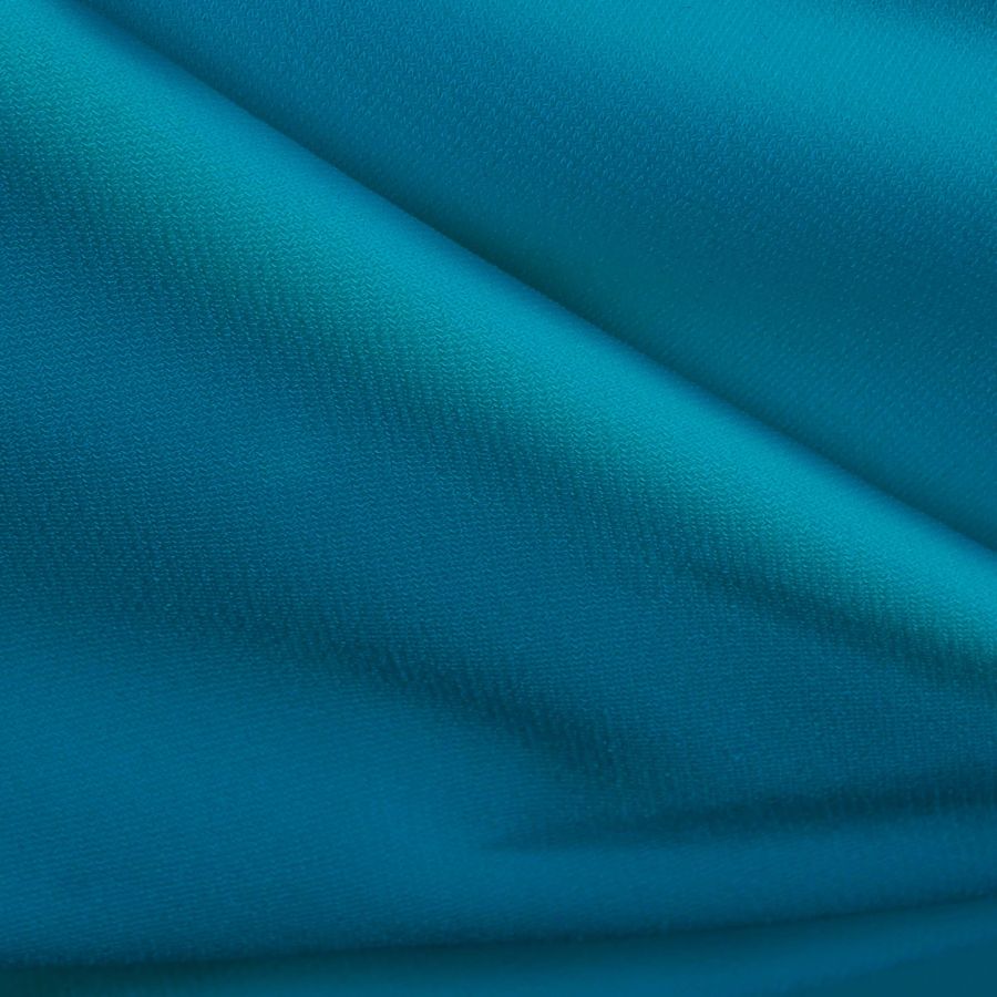 La tela base utilizada es el Punto Sintético con Spandex - Support, compuesta por un 95% de poliéster y un 5% de elastano, con un gramaje de 237 gr/m2 y un ancho de 152 cm. El color liso impreso es Azul Hiedra con un CMYK de 80 26 12 1, lo que expresa una base azul intensa y fría con matices sutiles de verde. Este color combina muy bien con otras tonalidades de azul, como el azul oscuro y el azul celeste, así como con colores neutros como el blanco, el negro y el gris.