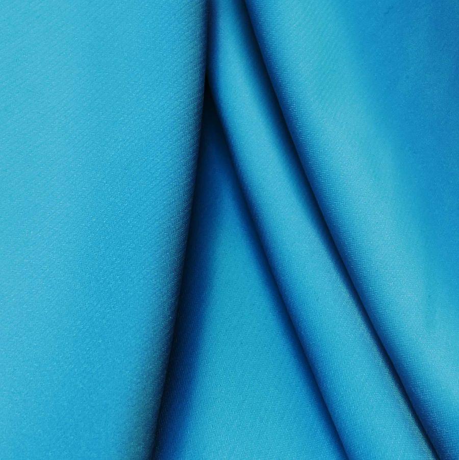 La tela base es el Punto Sintético con Spandex - Support, con una composición de 95% poliéster y 5% elastano. Tiene un gramaje de 237 gr/m2 y un ancho de 152 cm. El color liso impreso es Azul Windows, con una combinación de tintas cian, magenta, amarillo y negro, CMYK 82 33 11 1. Este tono de azul simboliza la tranquilidad y la serenidad, perfecto para piezas de lencería y tops deportivos. Combinado con tonos cálidos como el rojo o el amarillo, se crea un contraste de colores atractivo y vibrante.