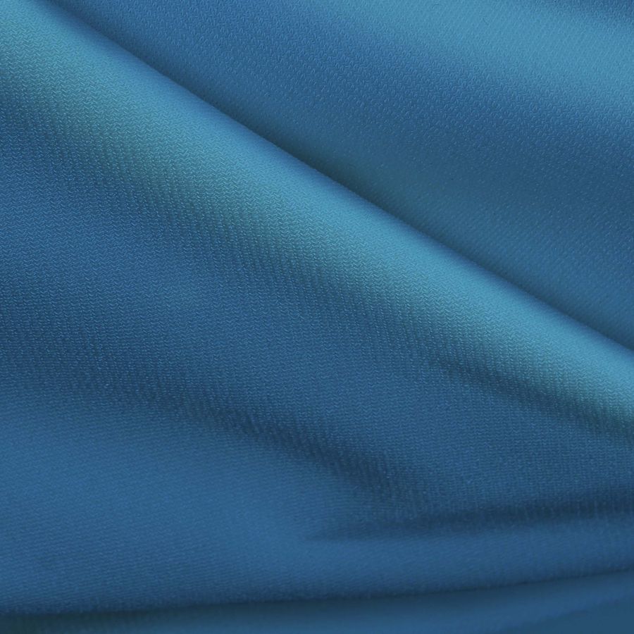 La tela base es Punto Sintético con Spandex - Support, compuesta por 95% poliéster y 5% elastano, con un gramaje de 237 gr/m2 y un ancho de 152 cm. Su color liso impreso es Azul seda, con una tinta Cyan de 72, Magenta de 34, Yellow de 2 y Black de 0, con un CMYK de 72 34 2 0. Este color es delicado y refinado, que desprende una sensación de tranquilidad y serenidad, y combina perfectamente con otros colores como el blanco, beige, rosa o violeta pálido.