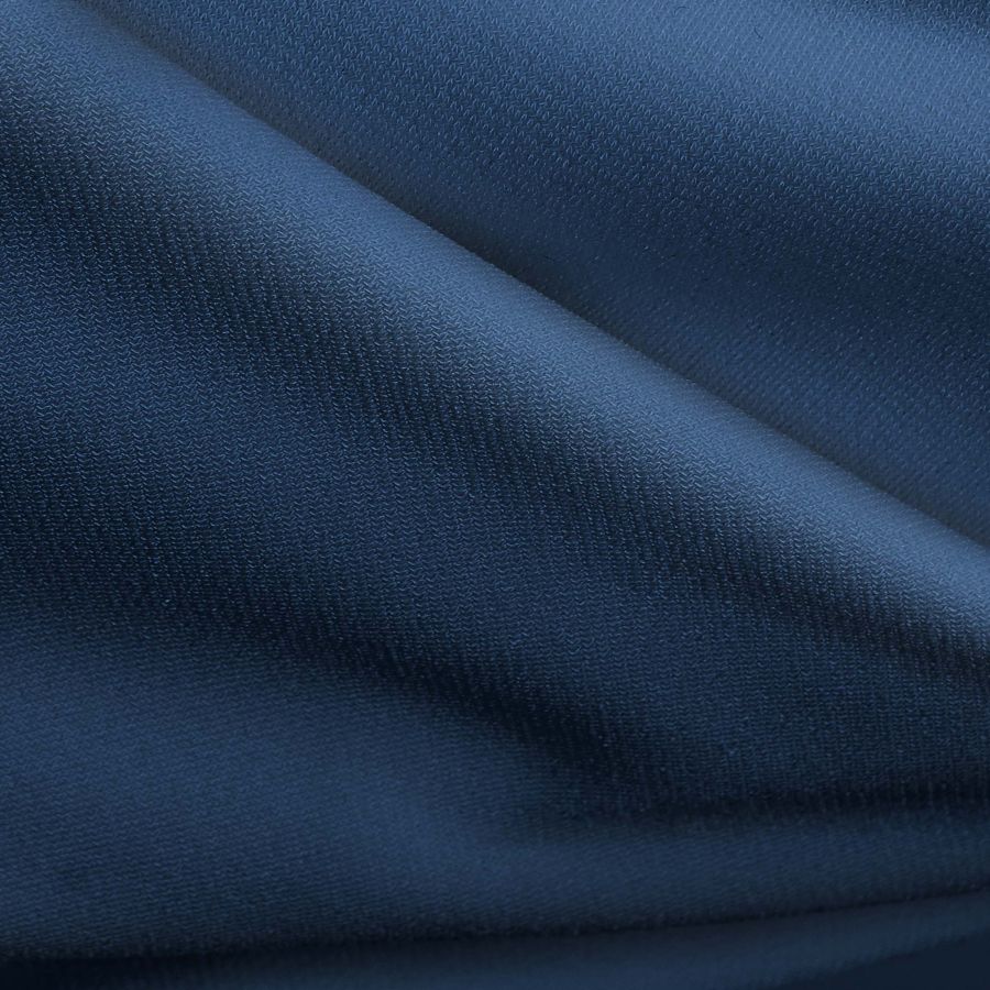La tela base, Punto Sintético con Spandex - Support, tiene un gramaje de 237 gr/m2 y está compuesta por un 95% de poliéster y un 5% de elastano, lo que la hace suave al tacto y elástica. El color liso impreso es un Azul marino profundo, creado a partir de una mezcla de tintas Cyan, Magenta, Yellow y Black, cuyos valores CMYK son 100, 80, 41 y 35 respectivamente. Este color secundario transmite una sensación de elegancia y profundidad, ideal para prendas de ropa que busquen transmitir seriedad y sofisticación. Combina especialmente bien con los colores Gris Claro, Blanco y Rosa Claro, aunque también puede ser un buen complemento para otros colores en una paleta de tonos clásicos y elegantes.