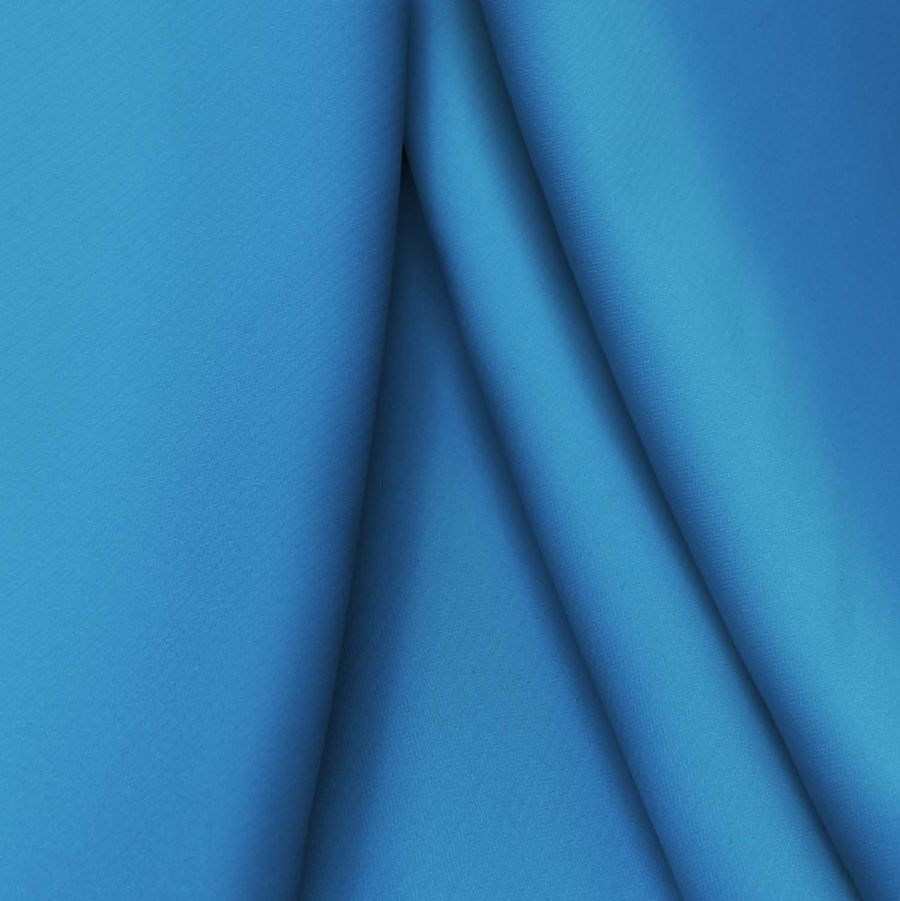 La tela base es un Punto Sintético con Spandex llamado Support, compuesto por 95% de poliéster y 5% de elastano, con un gramaje de 237 gr/m2 y un ancho de 152 cm. Su color liso impreso es Azul Windows, con un CMYK de 81 48 4 0, que representa un azul oscuro con un toque de gris. Este color es elegante e ideal para prendas de moda y deportivas, y combina especialmente bien con tonos blancos, grises y amarillos suaves.