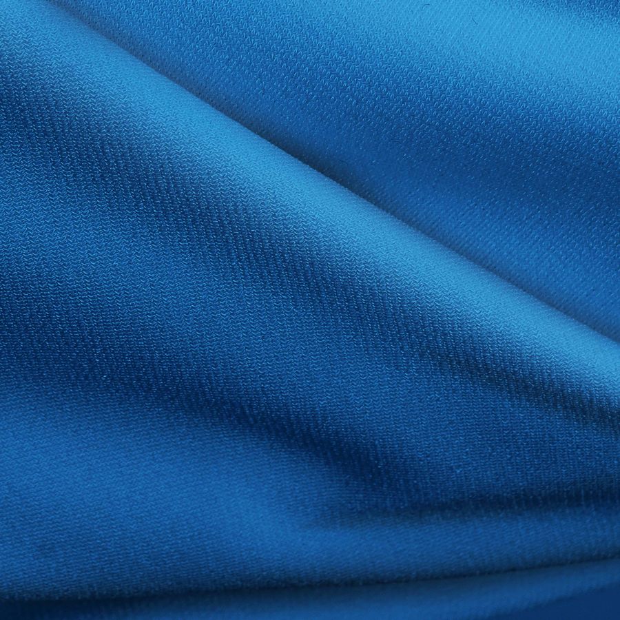 La tela base es el Punto Sintético con Spandex - Support, compuesta por un 95% de poliéster y un 5% de elastano, con un gramaje de 237 gr/m2 y un ancho de la tela de 152 cm. La tela tiene un tacto suave y elástico, siendo opaca visualmente. La tela está impresa con un color liso azul arándano, con CMYK de 94 63 7 0. Este color combina especialmente bien con tonos tierra y beige. El tejido está impreso a una sola cara mediante impresión digital textil. Es adecuado para lencería, como sujetadores y braguitas, también para prendas de punto, tops de moda, accesorios y scrunchies, así como para ropa deportiva para hombres, mujeres y niños. Se recomienda lavar a no más de 30ºC, no utilizar lejía, la posibilidad de limpiar en seco (salvo tricloroetileno), planchar a temperatura fría por el revés de la tela, y no se puede secar con secadora. La tela se imprime mediante la tecnología de sublimación, un proceso de transferencia de tinta por calor sobre el tejido.