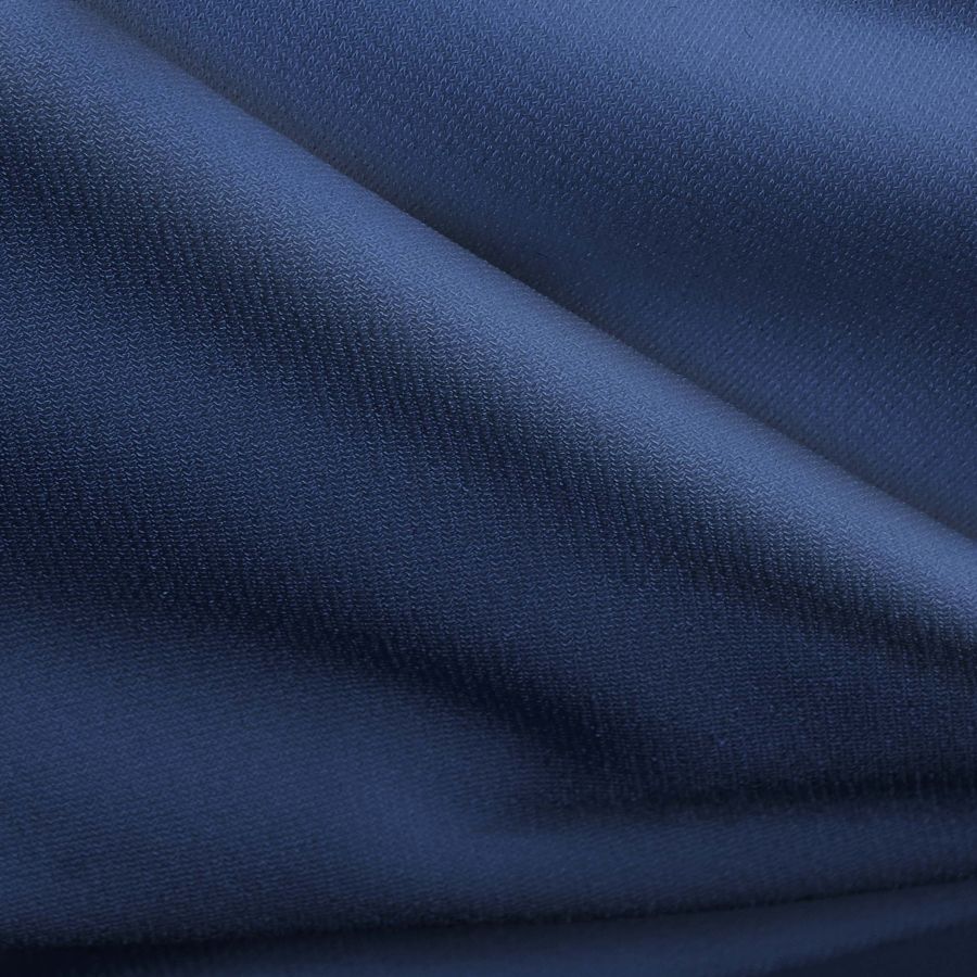La tela base es el Punto Sintético con Spandex - Support, compuesta por un 95% de poliéster y un 5% de elastano, con un gramaje de 237 gr/m2 y un ancho de 152 cm. El color liso impreso es un azul marino profundo, con valores CMYK de 100 84 38 28. Este color secundario se presenta como un tono intenso y oscuro que transmite estabilidad, elegancia y serenidad. Combina perfectamente con tonos claros como el blanco y el beige para lograr contrastes suaves y con tonos más vibrantes como el rojo o el naranja para conseguir combinaciones más impactantes.