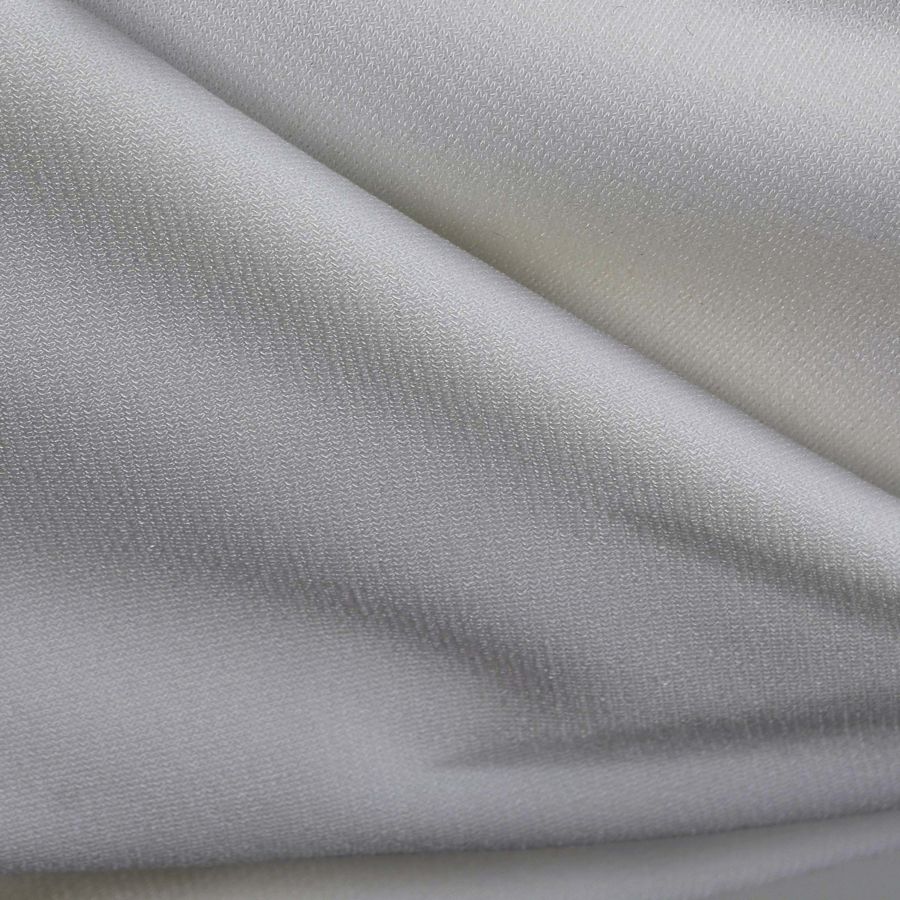 La tela base es el Punto Sintético con Spandex - Support, una tela de punto de composición 95% poliéster y 5% elastano con un gramaje de 237 gr/m2 y un ancho de 152 cm. El color impreso es un gris con tonalidades de WhiteSmoke, con una combinación de tinta cian de 10, magenta de 6, amarillo de 6 y negro de 0, lo que resulta en un CMYK de 10 6 6 0. Este color refleja un aspecto elegante y refinado, que combina muy bien con colores cálidos como el rojo y el naranja, y también con tonos más fríos como el azul y el verde.