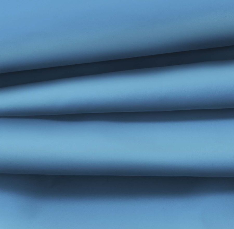 La tela base es la Tela Fina Repelente al Agua - Storm, un tejido técnico de 100% Poliéster, con un gramaje de 70 gr/m2 y un ancho de 145 cm. Su color liso impreso es un elegante Azul seda, que se logra mediante una tecnología de impresión digital textil con los siguientes valores de tinta: Cyan 67, Magenta 36, Yellow 6, Black 0, y un CMYK de 67 36 6 0.