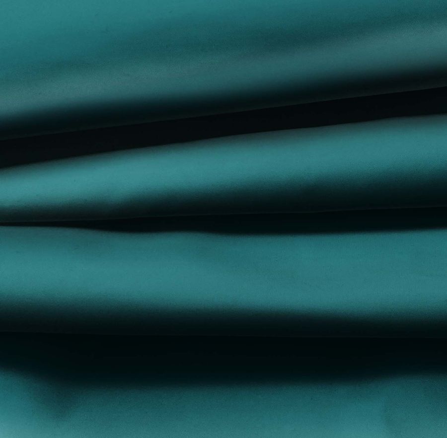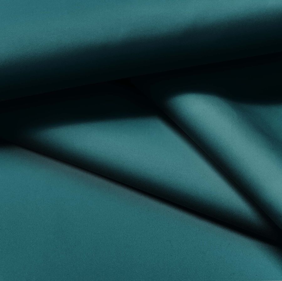 La tela fina repelente al agua - Storm es un tejido técnico compuesto por 100% poliéster con un gramaje de 70 gr/m2 y un ancho de 145 cm. El color liso impreso en esta tela es verde Teal profundo, con un CMYK de 93 50 52 49. Este color simbólicamente representa la estabilidad, la calma y la confianza en sí mismo, y técnicamente se compone de una alta cantidad de cian y una proporción equilibrada de magenta, amarillo y negro. Este color combina especialmente bien con tonos marrones, beige, dorados y grises.