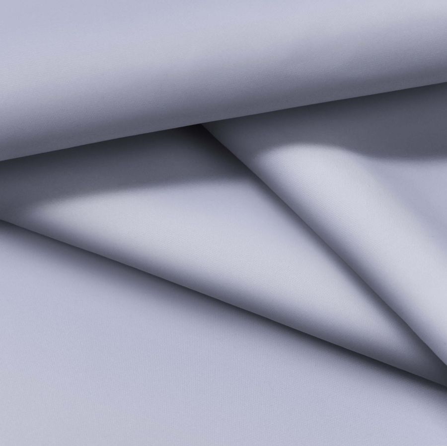 La tela base, denominada Tela fina repelente al Agua - Storm, es un tejido técnico compuesto al 100% por poliéster, con un gramaje de 70 gr/m2 y un ancho de 145 cm. Presenta un acabado impermeable e hidrófugo, y su textura es delgada y lisa al tacto. Se encuentra impresa en un color liso mediante tecnología de sublimación, con un CMYK de 38 29 9 0 que refleja los tonos Morado, Gris Pizarra y Azul. Este color secundario, con predominio del morado, se presenta como un tono elegante y sofisticado que resulta ideal para aplicaciones en moda de mujer y para la elaboración de cortinas de ducha en el hogar. Combinado con tonos grises o blancos, aporta un toque de frescura y modernidad.