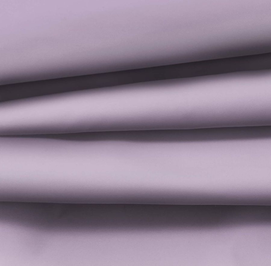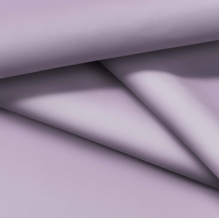 La tela base de esta descripción es la Tela fina repelente al Agua - Storm, un tejido técnico compuesto por 100% poliéster de 70 gr/m2 y un ancho de 145 cm. El color liso impreso es un tono morado lavanda púrpura, cuyo CMYK es de 35, 41, 13, 1 respectivamente. Este color transmite la calma y el equilibrio asociado con la tranquilidad y la relajación. Simbólicamente, el color púrpura está asociado con la creatividad, la sabiduría y la extravagancia.