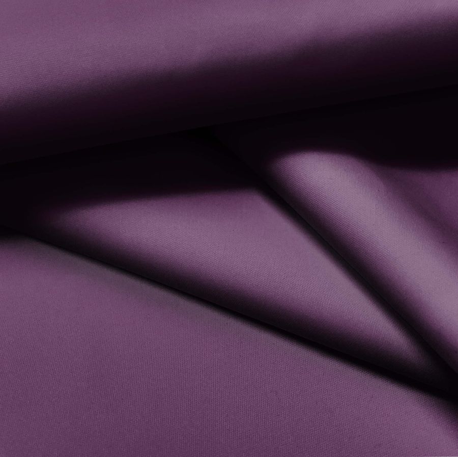 La tela base es la Tela Fina Repelente al Agua - Storm, de 100% poliéster, con un gramaje de 70 gr/m2 y un ancho de 145 cm. El color liso impreso es un Morado Oscuro con un CMYK de 71 91 37 45 y tiene un acabado que le otorga una impermeabilidad hidrófuga y una textura lisa y delgada. Combinado con otros colores, el Morado Oscuro puede resultar elegante y atrevido si se combina con tonos fuertes como el amarillo o el rojo, o puede resultar sobrio y elegante si se combina con tonos neutros como el blanco o el gris.