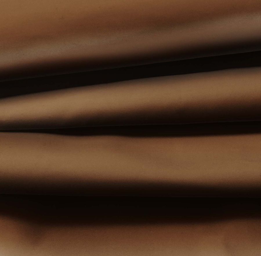 La tela base, Tela Fina Repelente al Agua - Storm, es un tejido técnico compuesto al 100% por poliéster, con un gramaje de 70 gr/m2 y un ancho de 145 cm. Su color liso impreso se compone principalmente de marrón y frijol negro, con las siguientes concentraciones CMYK: 45 71 88 67. Este color secundario tiene una simbología que representa la elegancia y sofisticación. Se combina muy bien con tonos neutros como el gris, beige y blanco, así como con tonos más vibrantes como el amarillo mostaza, rojo y naranja.