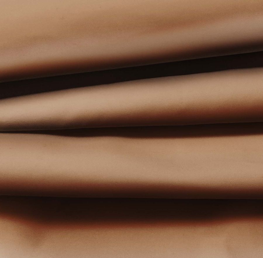 Las características de la tela base incluyen su acabado, que la hace impermeable e hidrófuga. También tiene una textura delgada y lisa al tacto, lo que la hace cómoda de llevar. Estas características combinan perfectamente con el color liso impreso Marrón Oso Café, lo que lo hace un color ideal para prendas y accesorios resistentes al agua o que se usan en exteriores.