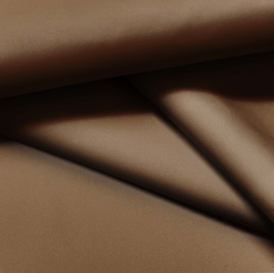 La Tela Fina Repelente al Agua - Storm es un tejido técnico con un gramaje de 70 gr/m2 y con un ancho de 145 cm. Su composición es de 100% poliéster. El color liso impreso es de un Marrón Panaderos Marrón, con un CMYK de 40 61 80 53, lo que indica que es un color oscuro y cálido con una dominante de rojo, que puede combinar bien con tonos naranjas, amarillos y rojizos.