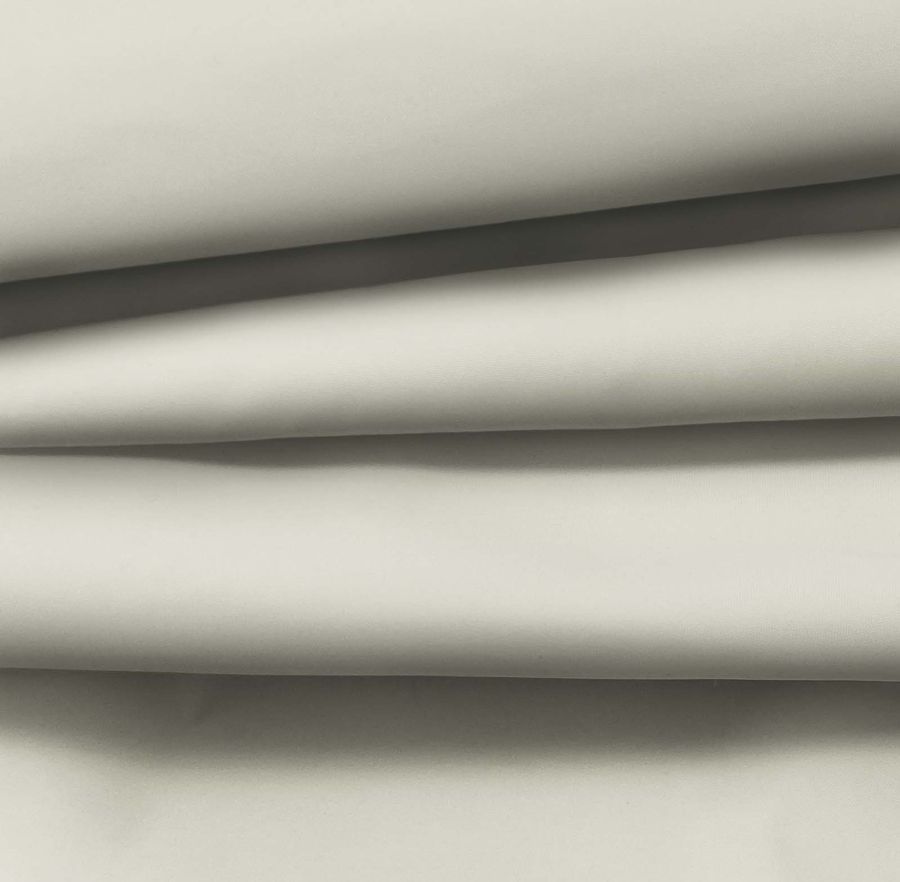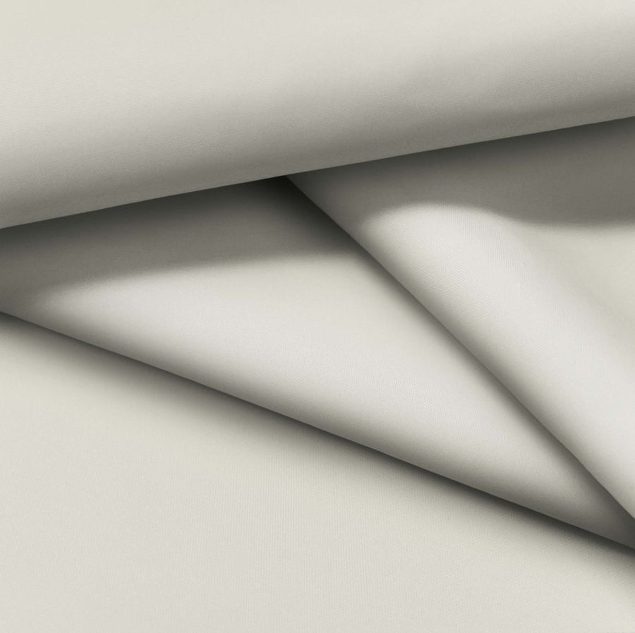 La tela base es la Tela fina repelente al Agua - Storm, un tejido técnico de composición 100% poliéster con un gramaje de 70 gr/m2 y un ancho de 145 cm. El color liso impreso en esta tela es una combinación de Crudo y Ceniza Blanca con un contenido de tinta cyan del 16%, tinta magenta del 9%, tinta yellow del 23% y tinta black del 0%, que se traduce en un CMYK de 16 9 23 0. Este color secundario, que combina una tonalidad blanca con un gris claro, evoca la sensación de elegancia, sofisticación y modernidad.