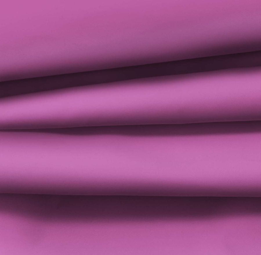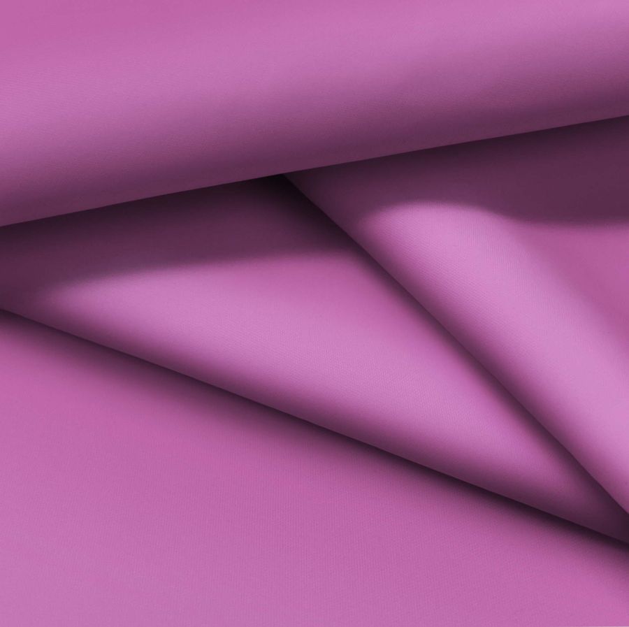 La tela base es la Tela fina repelente al agua - Storm, un tejido técnico de 100% poliéster con un gramaje de 70 gr/m2 y un ancho de 145 cm. Su color liso impreso es Morado Orquídea Mediana, cuyo CMYK es 34 75 6 0. El color secundario es un violeta intenso y oscuro, que simboliza el misterio y la creatividad. Combina especialmente bien con tonos neutros como el gris, el negro y el blanco, así como con tonos cálidos como el dorado y el naranja intenso. La tela está impresa con el color liso a una sola cara por impresión digital textil, lo que permite una gran precisión en la reproducción de colores y diseños.