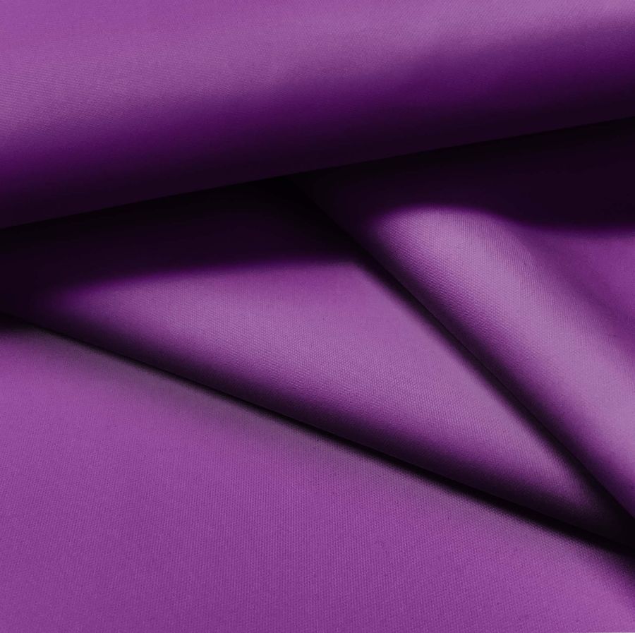 La tela base es la Tela Fina Repelente al Agua - Storm, un tejido técnico de 100% poliéster con un gramaje de 70 gr/m2 y un ancho de 145 cm. El color liso impreso es un Morado Mermelada Púrpura con una combinación de tinta Cyan de 69, tinta Magenta de 100, tinta Yellow de 10 y tinta Black de 3, con un CMYK de 69 100 10 3.