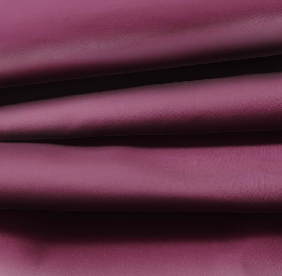 La tela base es la Tela Fina Repelente al Agua - Storm, compuesta al 100% de poliéster, con un gramaje de 70 gr/m2 y un ancho de 145 cm. El color liso impreso en la tela es de un tono morado-berenjena con un CMYK de 50 87 39 47. Este tono es una mezcla de la intensidad del rojo y del azul, lo que crea un color vibrante y profundo. El color secundario es un tono magenta que se mezcla con el tono principal para dar una mayor intensidad y brillo. Este color en particular combina bien con tonos azules, grises y blancos. El tejido está impreso con el color liso a una sola cara mediante impresión digital textil, lo que significa que la impresión solo se encuentra en una cara del tejido y no es un tintado del material en sí.
