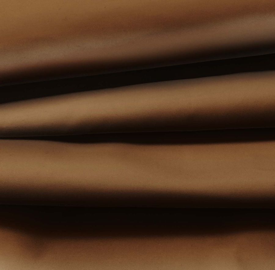 La tela de la que hablamos es la Tela Fina Repelente al Agua Storm, la cual tiene una composición del 100% Poliéster y un gramaje de 70 gr/m2. El ancho de la tela es de 145 cm. El color liso impreso que nos han proporcionado es un marrón oscuro, el cual posee un CMYK de 43 70 91 64. Este color tiene una tonalidad fría y elegante, lo que lo hace ideal para aplicaciones en moda, especialmente en chaquetas para hombres y mujeres.