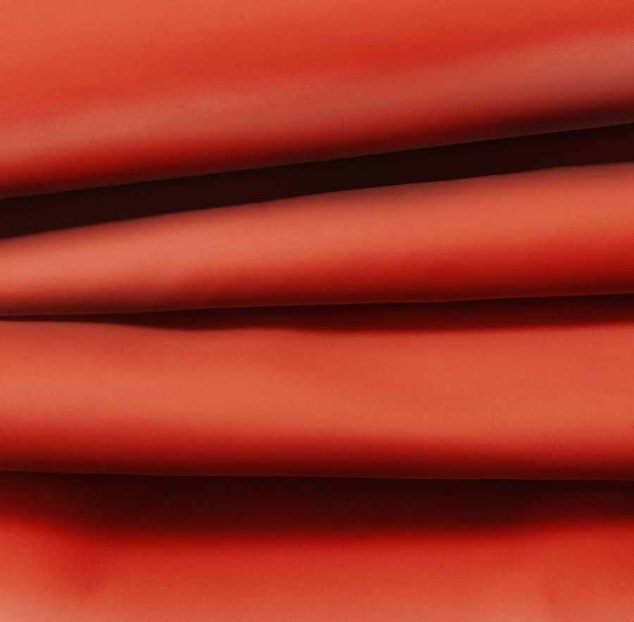 La tela base es la Tela fina repelente al Agua - Storm, un tejido técnico compuesto por un 100% de poliéster, con un gramaje de 70 gr/m2 y un ancho de 145 cm. Su color liso impreso es un rojo pimiento picante, con los siguientes valores en CMYK: 16 93 100 7. Este color representa una energía fuerte y apasionada, evocando emociones intensas y una personalidad vibrante. Combinado con colores como el negro, el blanco o el gris, da vida a un look provocativo, elegante y enérgico.