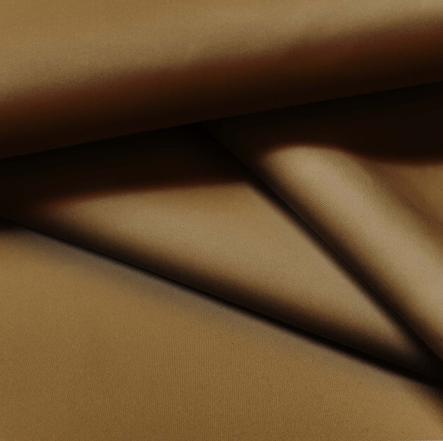 La tela base es una Tela fina repelente al Agua - Storm de tejido técnico compuesta al 100% de poliéster, con un gramaje de 70 gr/m2 y un ancho de 145 cm. El color liso impreso es un marrón oscuro con un CMYK de 39 62 95 52. Este color transmite elegancia y serenidad, además de ser fácilmente combinable con tonalidades verdes, amarillos y naranjas. Cabe destacar que este tejido se imprime a una sola cara por impresión digital textil, y no se trata de un tejido tintado.