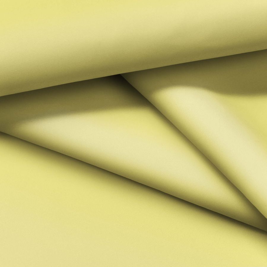 La Tela Fina Repelente al Agua - Storm es un tejido técnico de poliéster de 70 gr/m2, con un ancho de 145 cm y un acabado hidrófugo. El color liso impreso en esta tela es el amarillo maíz, con un CMYK de 4 3 64 0 y un tacto liso y delgado.
