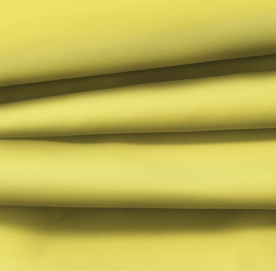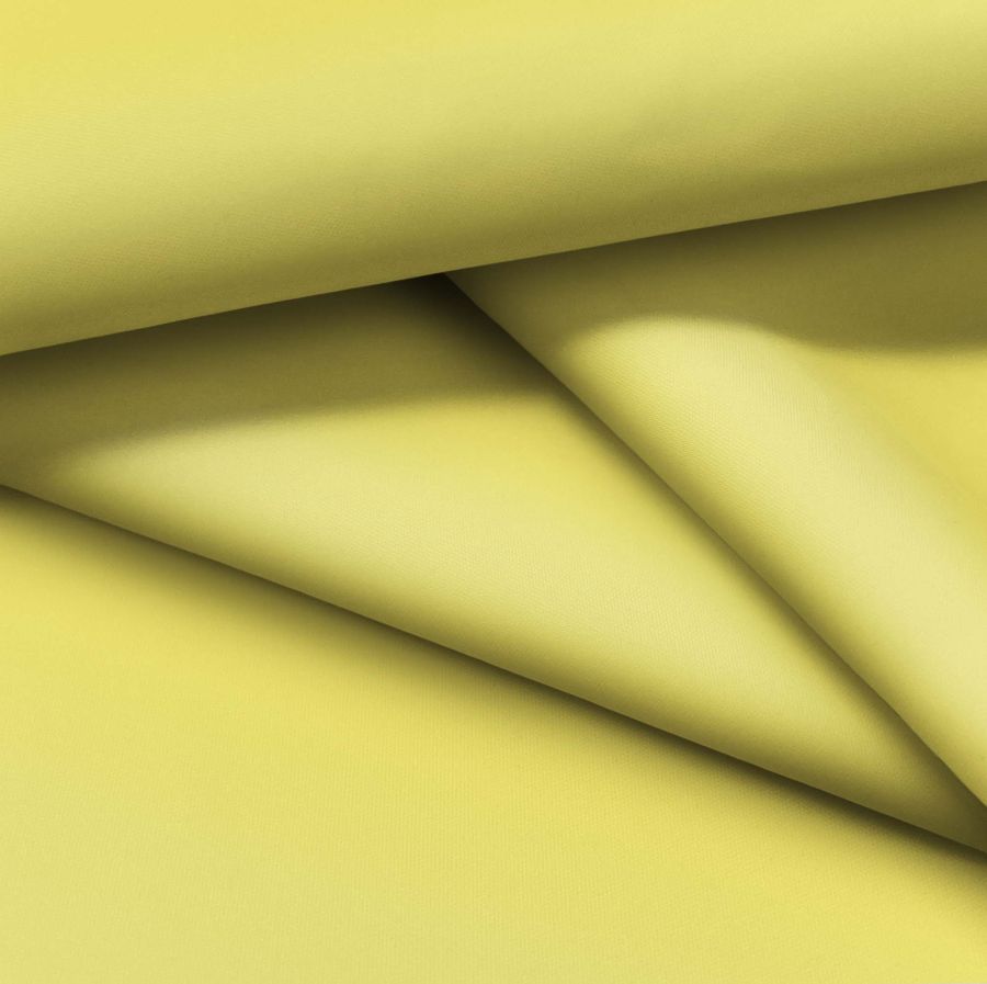 La tela base es la Tela fina repelente al Agua - Storm, un tejido técnico de 100% poliéster de 70 gr/m2 y 145 cm de ancho. Esta tela presenta un acabado impermeable e hidrofugo, y tiene una textura delgada y lisa al tacto. El color liso impreso en esta tela es un amarillo maíz, con un contenido de tinta de cyan de 5, magenta de 4, yellow de 72 y black de 0. Este color primario amarillo maíz es un tono cálido y luminoso que representa la claridad, la felicidad y la alegría. Este color se asocia con el sol, la luz, la inteligencia y el optimismo. El amarillo maíz combina bien con tonos azules, verdes, grises y rosas, lo que produce una sensación de armonía y equilibrio en la composición.