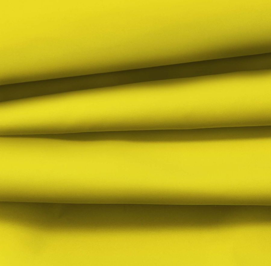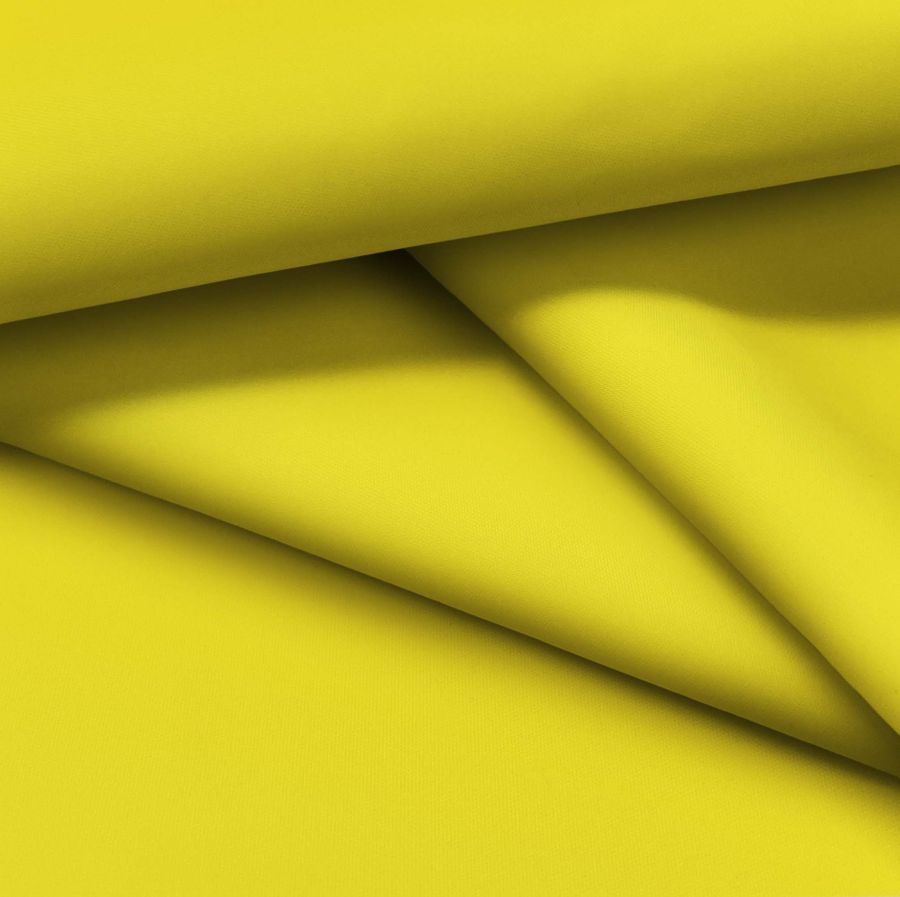 La tela base es la Tela fina repelente al Agua - Storm, con una composición de 100% poliéster, un gramaje de 70 gr/m2 y un ancho de 145 cm. El color liso es amarillo dorado, con un valor CMYK de 7 9 89 0. Este color simboliza la energía y el optimismo, y se asocia con la sabiduría y la confianza en uno mismo. Además, su vibración cromática tiene una influencia positiva en el ánimo de las personas. El amarillo dorado es un color que combina muy bien con el verde oscuro, el marrón y el negro.
