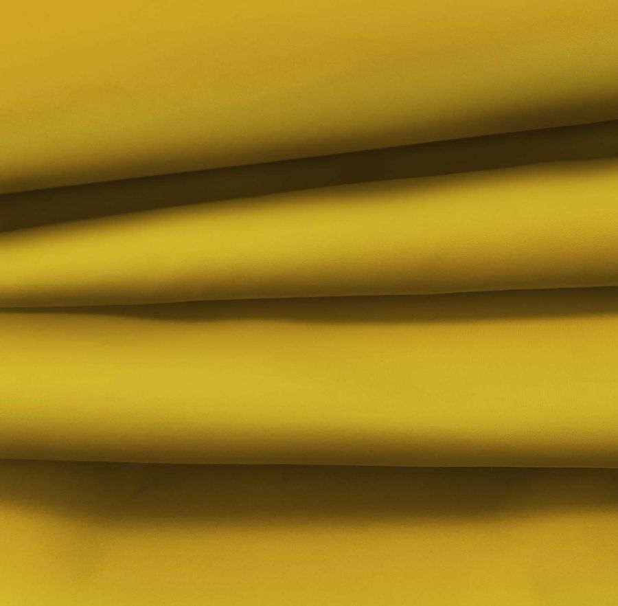 La tela base es la Tela Fina Repelente al Agua Storm, de tipo tejido técnico compuesto por un 100% de poliéster con un gramaje de 70 gr/m2 y un ancho de tela de 145 cm. El color liso impreso es una combinación de amarillo y marrón galleta con un CMYK de 21 38 93 9. Este color ofrece una sensación cálida y vibrante al mismo tiempo, que combina perfectamente con tonos tierra para lograr un estilo natural y acogedor. La tela está impresa con este color liso a una sola cara mediante impresión digital textil.