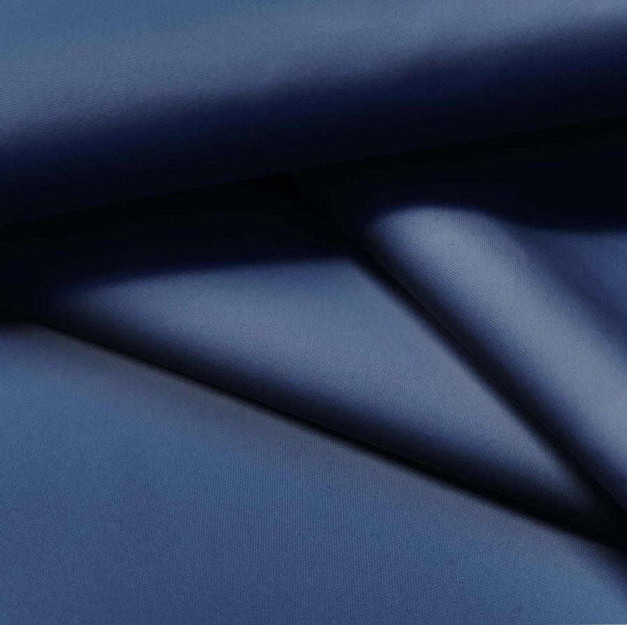 La tela base es la Tela fina repelente al Agua - Storm, compuesta por 100% poliéster y con un gramaje de 70 gr/m2. El color liso impreso es un Azul marino profundo, que se obtiene a través de la combinación de las tintas Cyan (100), Magenta (84), Yellow (37) y Black (27), con un perfil de color CMYK: 100 84 37 27. Este color es elegante, sofisticado y, al mismo tiempo, versátil, combinando perfectamente con otros colores como blanco, gris, beige, rojo, naranja y amarillo.