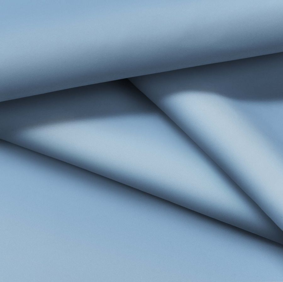 La tela base es la Tela fina repelente al Agua - Storm, un tejido técnico compuesto por 100% POLIÉSTER con un gramaje de 70 gr/m2 y un ancho de 145 cm. El color liso impreso en esta tela es Azul vaquero, el cual está compuesto por una combinación de tintas CMYK de 56 de Cyan, 29 de Magenta, 11 de Yellow y 1 de Black.