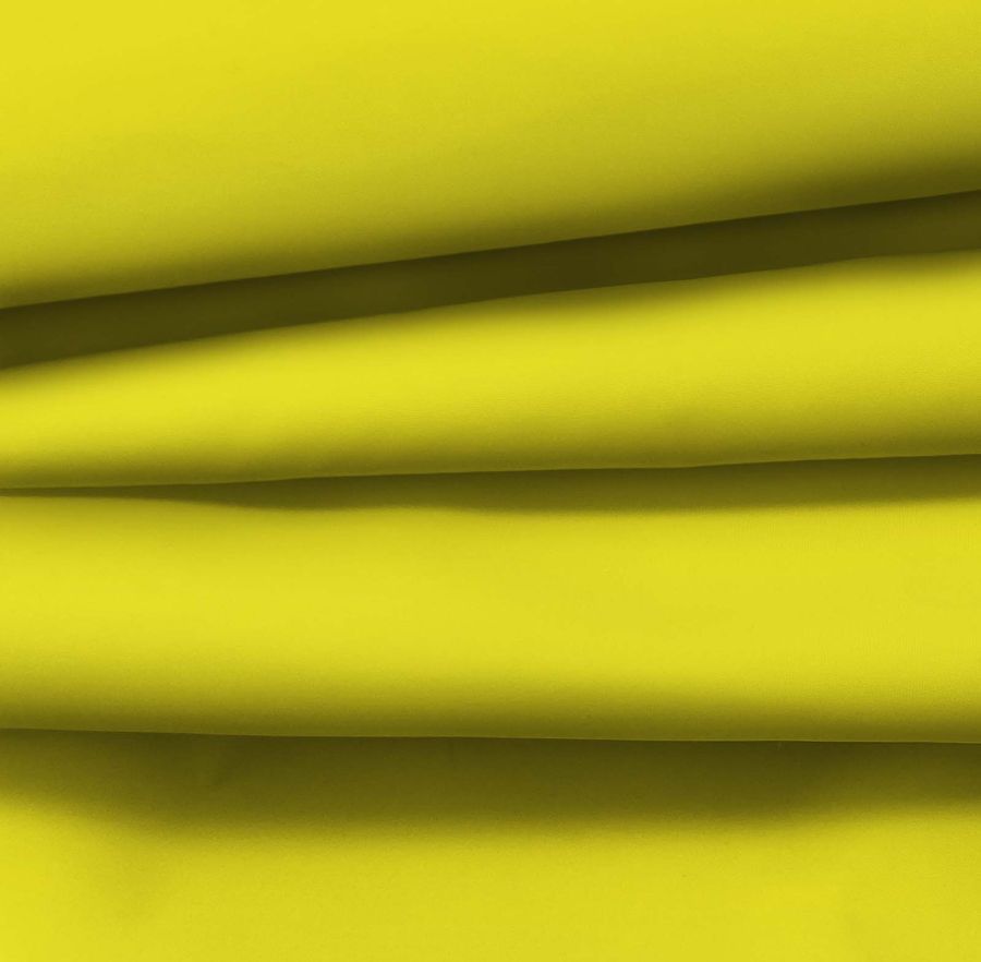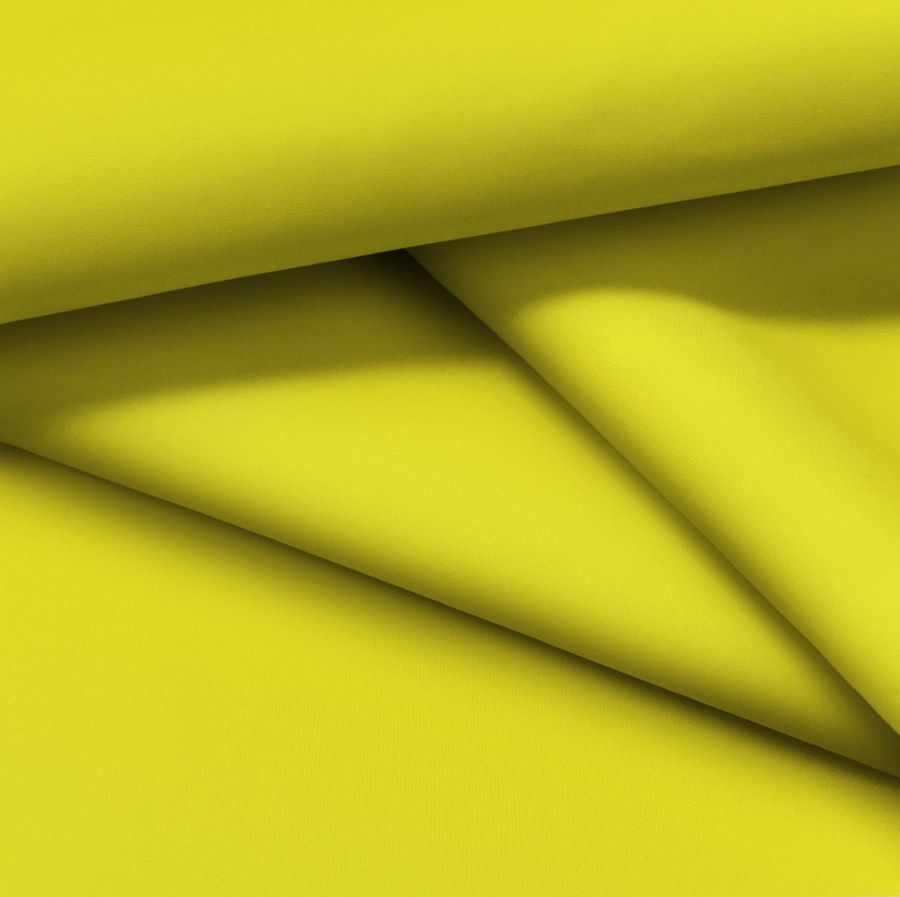 La tela base es la Tela fina repelente al Agua - Storm, con un compuesto del 100% de poliéster, un gramaje de 70 gr/m2, un ancho de tela de 145 cm y una tecnología de impresión por sublimación, lo que implica que puede ser impresa a una sola cara pero no tintada. El color amarillo canario impreso tiene un alto contenido de tinta amarilla con poco cian y magenta, logrando un tono brillante y saturado. Es un color que combina especialmente bien con azules y verdes, pero también con grises y blancos.