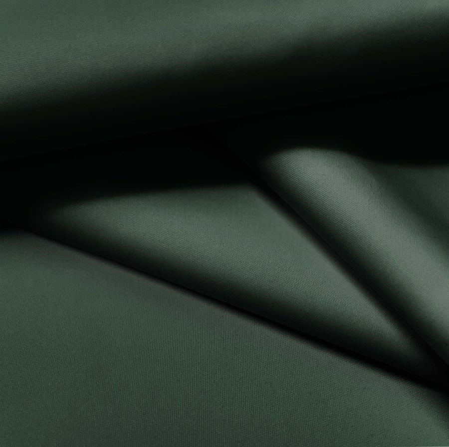 El color liso impreso en verde bosque oscuro con un contenido de CYMK de 85 57 78 76 complementa a la perfección con tonos tierra, naranjas oscuros y azules grises. La tela base es impermeable e hidrófuga, de textura delgada y tacto suave y liso.