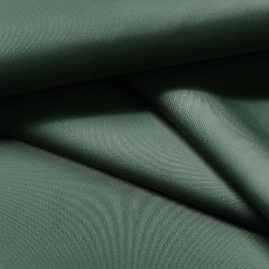 La tela base de este tejido se llama Tela Fina Repelente al Agua - Storm y tiene una composición de 100% poliéster con un peso de 70 gr/m2 y un ancho de 145 cm. El color liso impreso en esta tela es un tono verde bosque oscuro, cuya fórmula de impresión es CMYK 75 45 69 48. Este color secundario tiene un simbolismo relacionado con la naturaleza y la serenidad, y combina especialmente bien con marrones, beiges y tonos tierra.