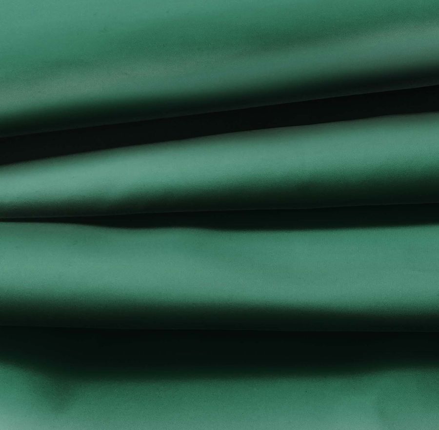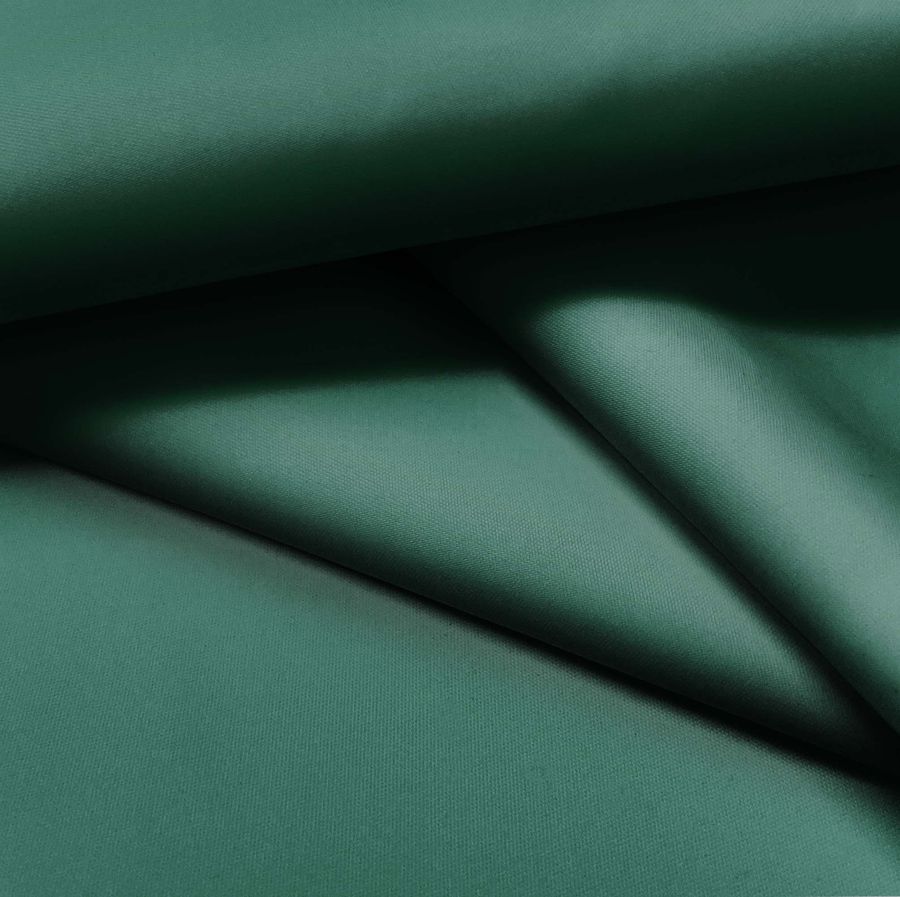 La tela base es la Tela Fina Repelente al Agua - Storm, compuesta por 100% poliéster, con un gramaje de 70 gr/m2, un ancho de 145 cm y un tejido técnico que la hace hidrófuga e impermeable. El color liso impreso es un hermoso Verde Mar Profundo, que se compone de una combinación de tinta Cyan (84), Magenta (40), Yellow (70) y Black (42), reflejada en su CMYK 84 40 70 42. Este color emana una sensación de serenidad, naturaleza y sofisticación, y se combina bien con colores como el blanco, negro, marrón oscuro y amarillo mostaza.