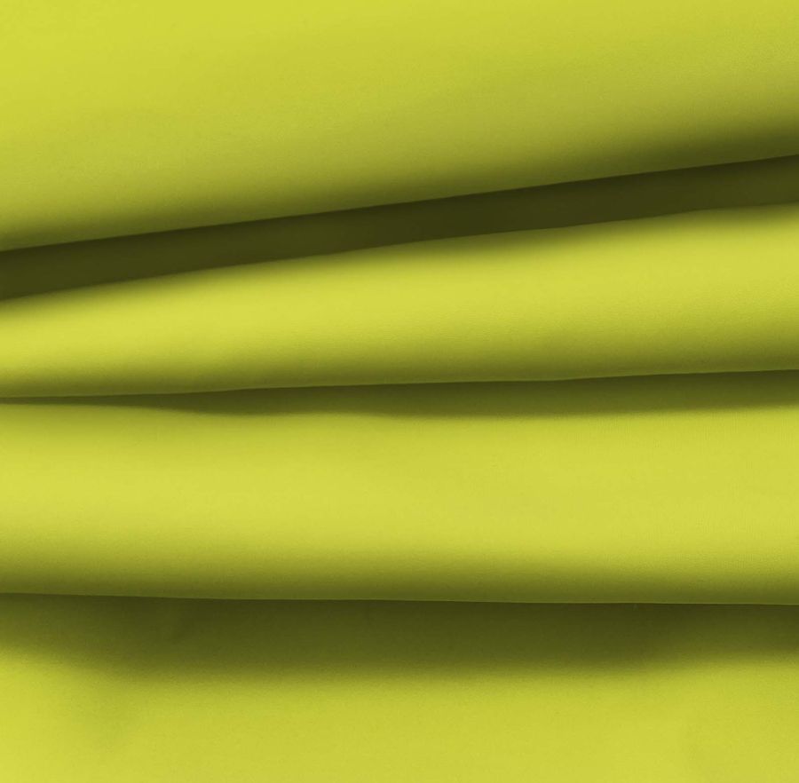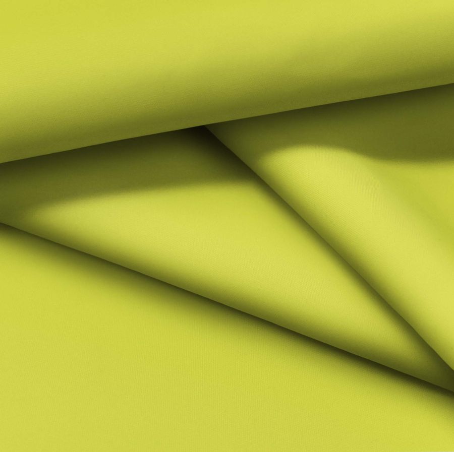 La tela base en cuestión es la Tela fina repelente al Agua - Storm, un tejido técnico con composición 100% poliéster, un gramaje de 70 gr/m2 y un ancho de 145 cm. El color liso impreso, que presenta un característico tono verde ácido, está compuesto de una tinta cyan del 29%, una tinta magenta del 3%, una tinta yellow del 86% y una tinta black del 0%, dando como resultado un CMYK de 29 3 86 0.