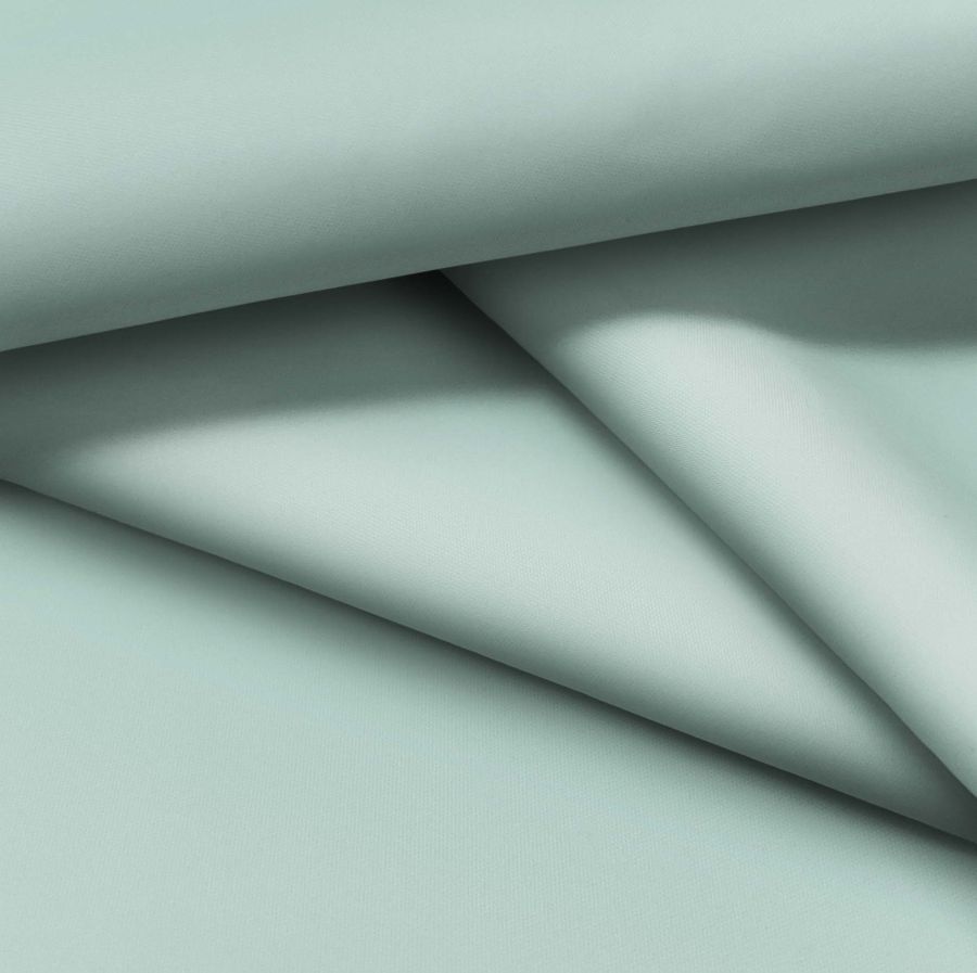 La tela base es la Tela fina repelente al Agua - Storm, un tejido técnico compuesto por un 100% de poliéster con un gramaje de 70 gr/m2 y una anchura de 145 cm. Su color liso impreso es de un verde-azul verdoso con los siguientes valores en el CMYK: 40 7 29 0. Este color evoca la naturaleza y el entorno tranquilo, y combina muy bien con tonos tierra y marrones oscuros.