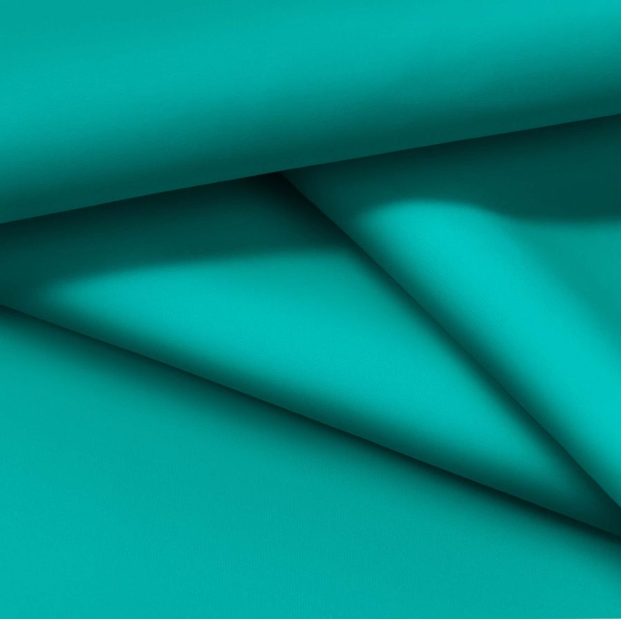 La tela base es la Tela fina repelente al Agua - Storm, un tejido técnico compuesto al 100% por poliéster y con un gramaje de 70 gr/m2. Su ancho es de 145 cm y sus cuidados incluyen un lavado máximo a 40ºC, planchado a temperatura fría y precaución con los blanqueadores y la limpieza en seco. Esta tela es ideal para diferentes aplicaciones, como moda (chaquetas), hogar (cortinas de ducha) y deporte (chubasqueros, chaquetas), entre otras. Su temporada es principalmente el invierno. El color liso impreso es el Verde Espuma de Mar, cuyo CMYK es de 81 18 50 3. Este tono es una mezcla perfecta entre el azul claro y el verde suave, encontrando su simbolismo en la tranquilidad, la paz y la naturaleza. El color combina especialmente con tonos grises y cremas, añadiendo serenidad a cualquier diseño. Cabe destacar que la tela está impresa con el color liso a una sola cara por impresión digital textil, lo que significa que la tela no es tintada sino impresa por una sola cara.