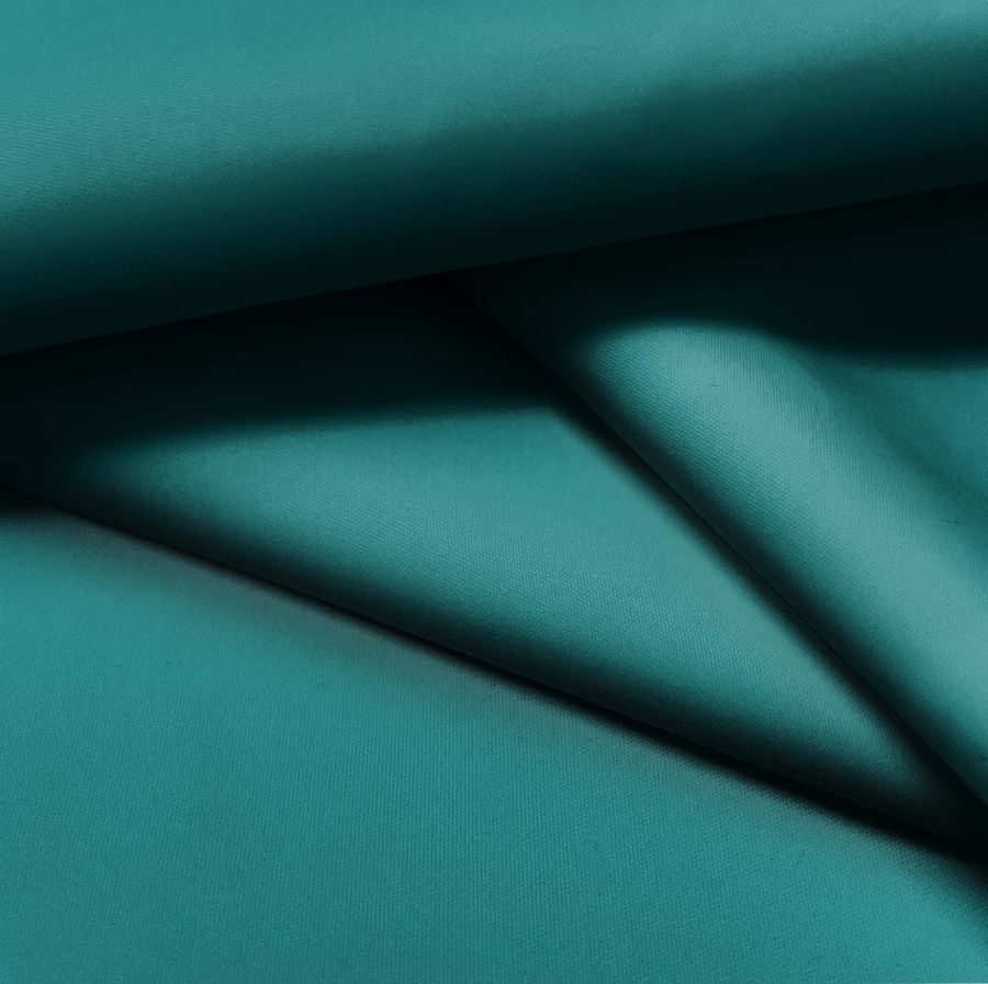 La tela base es Tela fina repelente al Agua - Storm, un tejido técnico 100% poliéster de 70 gr/m2 y 145 cm de ancho. El color liso impreso es un verde azulado medio con un CMYK de 88 36 53 30. Este color simboliza la naturaleza y transmite una sensación de calma y serenidad. Combina bien con otros tonos de verdes y azules, así como con tonos neutros como el gris y el blanco. Cabe destacar que el tejido está impreso con el color liso a una sola cara por impresión digital textil, lo que asegura una alta calidad y nitidez en el estampado.