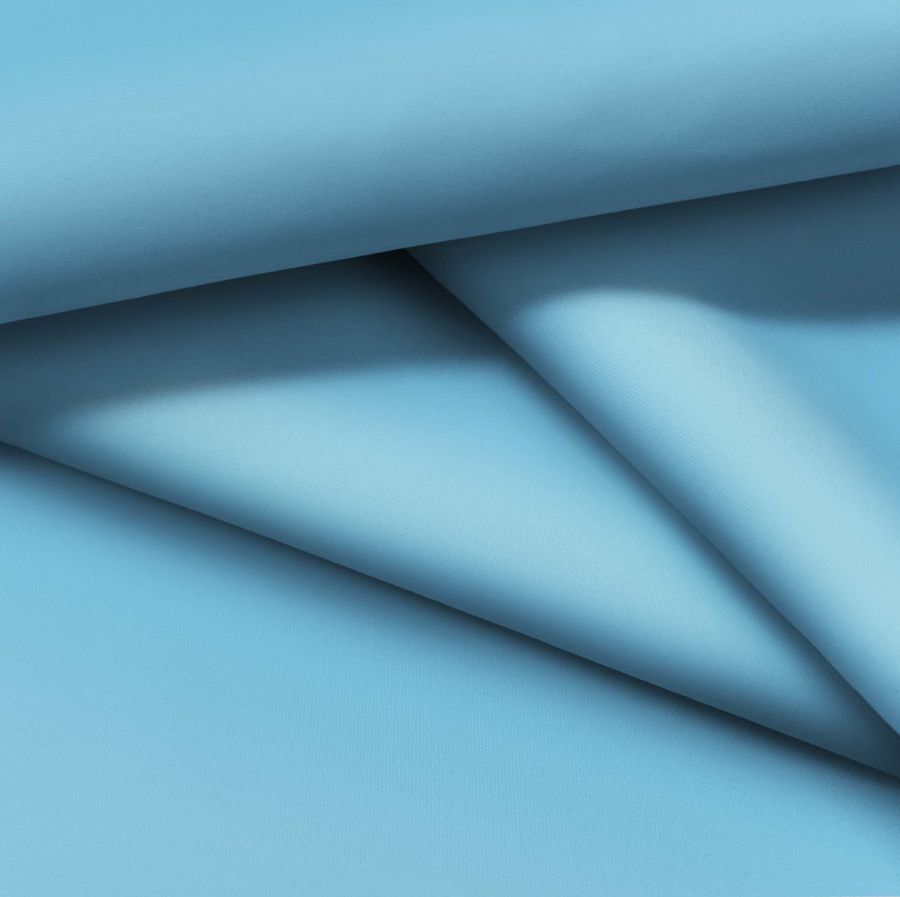 La tela base es la Tela fina repelente al Agua - Storm, un tejido técnico de 100% poliéster, con un gramaje de 70 gr/m2 y un ancho de 145 cm. El color liso impreso es Azul Iceberg, con una composición en CMYK de 59 14 4 0, lo que refleja una tonalidad clara y luminosa con ciertos tonos verdosos. Este color combina especialmente con tonos blancos, grises y azules, creando un efecto fresco y relajante.