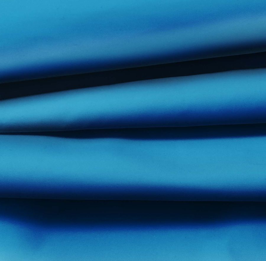 La tela base de este tejido es la Tela Fina Repelente al Agua - Storm de 100% poliéster con un gramaje de 70 gr/m2 y un ancho de 145 cm. El color liso impreso sobre esta tela es un azul intenso con una combinación en el CMYK de 92 57 13 2, lo que hace referencia a un color cian intenso con tintes magenta y amarillos.