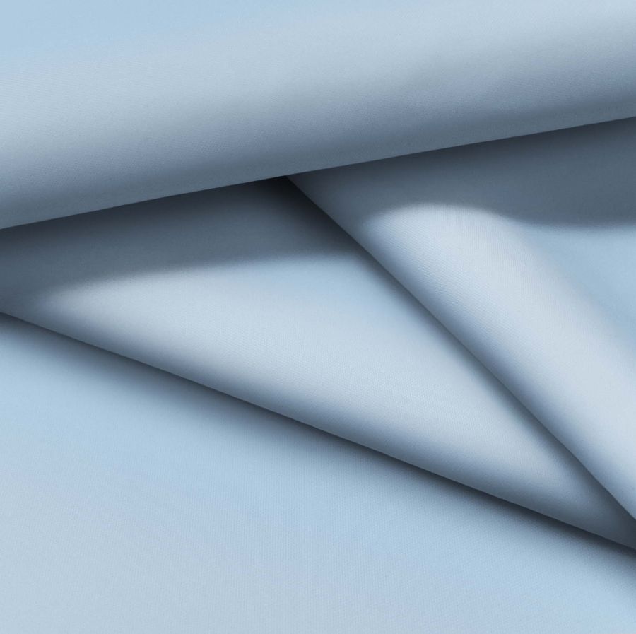 La tela base, Tela fina repelente al Agua - Storm, es un tejido técnico compuesto al 100% de poliéster con un gramaje de 70 gr/m2 y un ancho de 145 cm. El color liso impreso en la tela es Azul Iceberg, cuyo CMYK es 40 15 2 0. Este color secundario es una variante del azul pastel con un toque fresco y juvenil. Combinado con otros colores claros como el blanco, beige o rosa pastel, se crea una armonía suave y dulce que es perfecta para la moda femenina y la decoración del hogar.