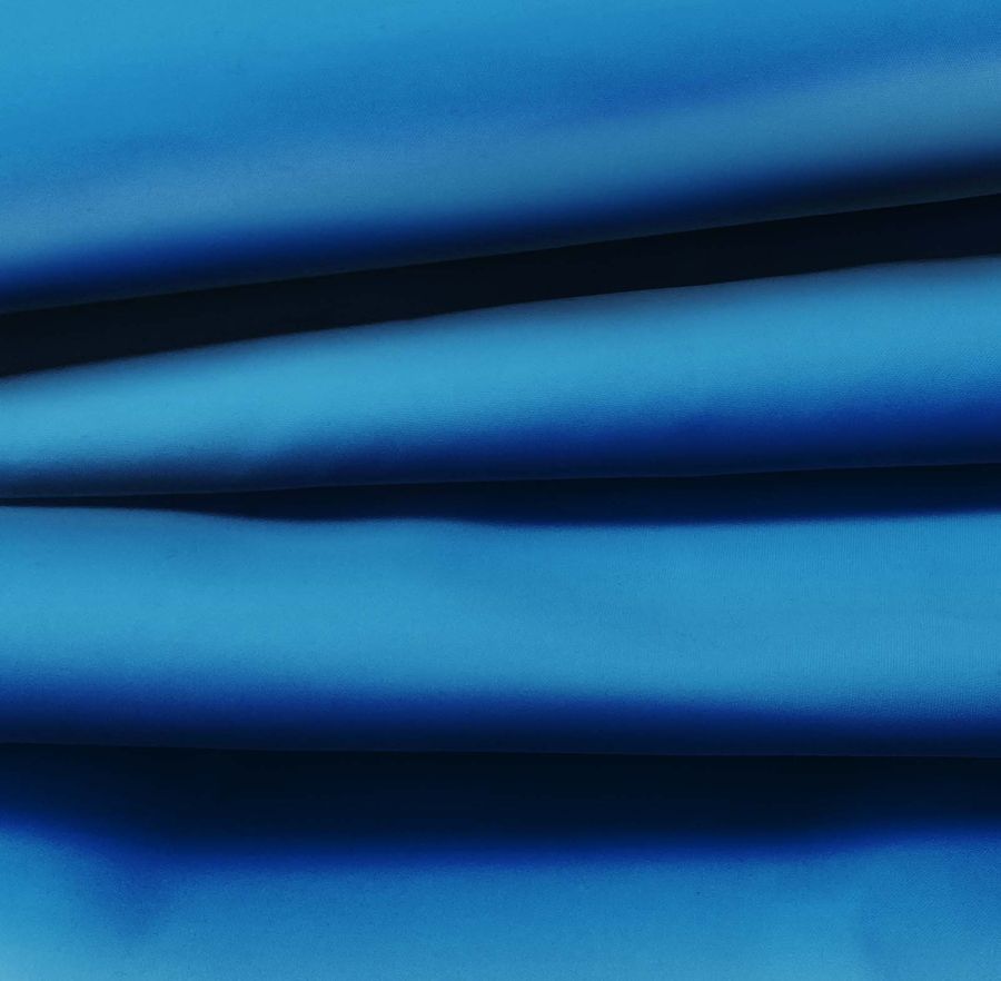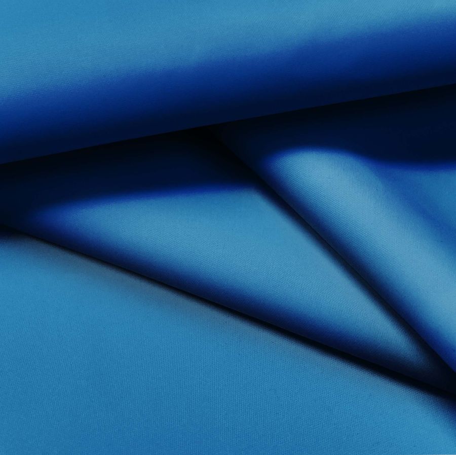La tela base es la Tela Fina Repelente al Agua - Storm, un tejido técnico con composición 100% poliéster de 70 gr/m2 y un ancho de 145 cm. El color liso impreso en esta tela es un Azul Arándano, cuyo CMYK es de 94 63 7 0, destacando la presencia de la tinta Cyan en su mayor porcentaje. Este color simboliza la calma, la confianza y la estabilidad. Es un color versátil que se combina bien con tonos como el blanco, gris claro, negro y beige, lo que lo hace ideal para la moda en chaquetas y chubasqueros deportivos.