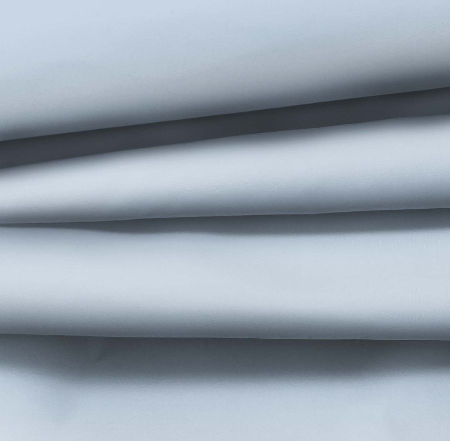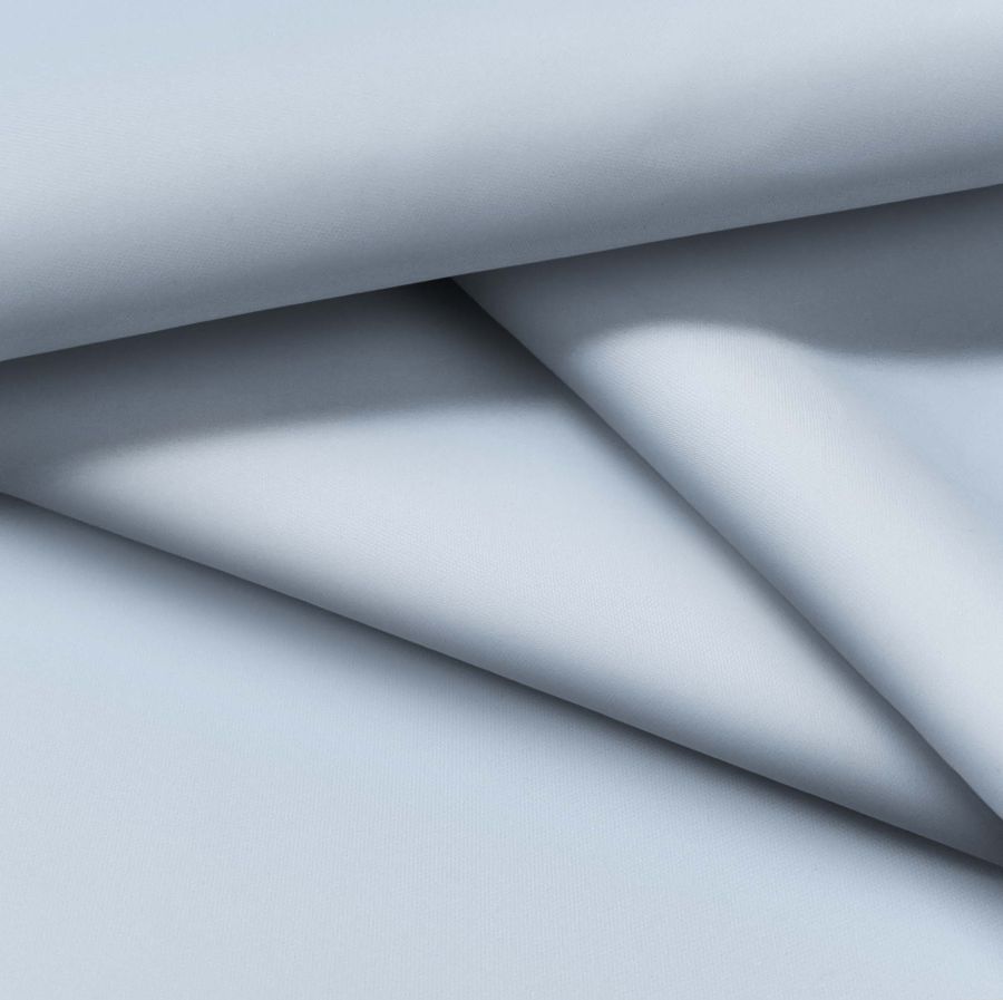 La tela base es una Tela fina repelente al Agua - Storm, de tejido técnico compuesta al 100% de poliéster, con un gramaje de 70 gr/m2 y un ancho de 145 cm. El color liso impreso es azul-grisáceo, con un CMYK de 29 11 3 0. Este color se caracteriza por ser sereno y elegante, al mismo tiempo que es fresco y moderno. Combina a la perfección con tonos neutros como el blanco, negro y gris, así como con tonos tierra y marrones.