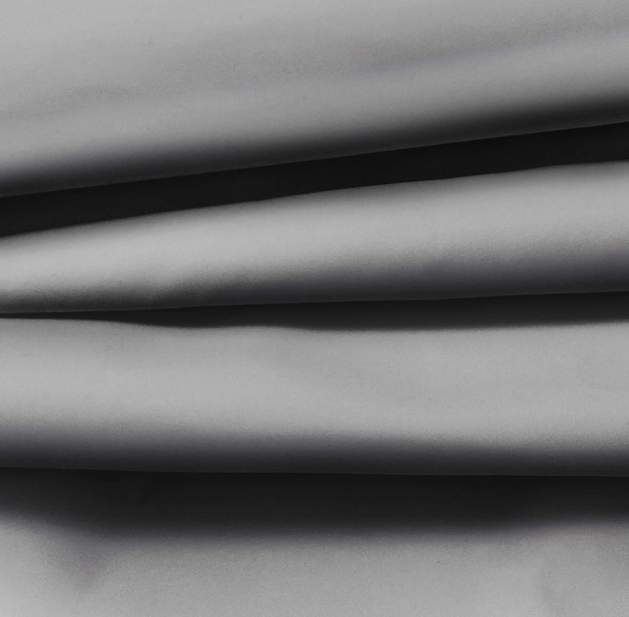 La tela base es la Tela Fina repelente al agua - Storm, un tejido técnico compuesto por 100% poliéster con un gramaje de 70 gr/m2 y una anchura de 145 cm. Es un tejido hidrófugo con acabado impermeable, muy delgado y liso al tacto. Está impreso con un color liso llamado Acorazado gris, que se compone de 51% de tinta Cyan, 42% de tinta Magenta, 38% de tinta Yellow y 20% de tinta Black, con un CMYK de 51 42 38 20.