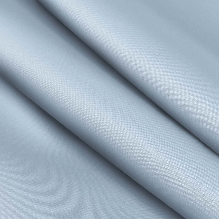La tela base es la Tela Perchada para Sudaderas - Boston, compuesta por 100% poliéster, con un gramaje de 220 gr/m2 y de un ancho de 160 cm. El color liso impreso es un Azul Violeta Claro, con un contenido CMYK de 33% Cyan, 12% Magenta, 3% Yellow y 0% Black. Este color secundario se caracteriza por su frescura, delicadeza y elegancia, transmitiendo tranquilidad y serenidad en su conjunto. Combina perfectamente con colores cálidos como el amarillo, beige y algunos tonos de rosa pálido.