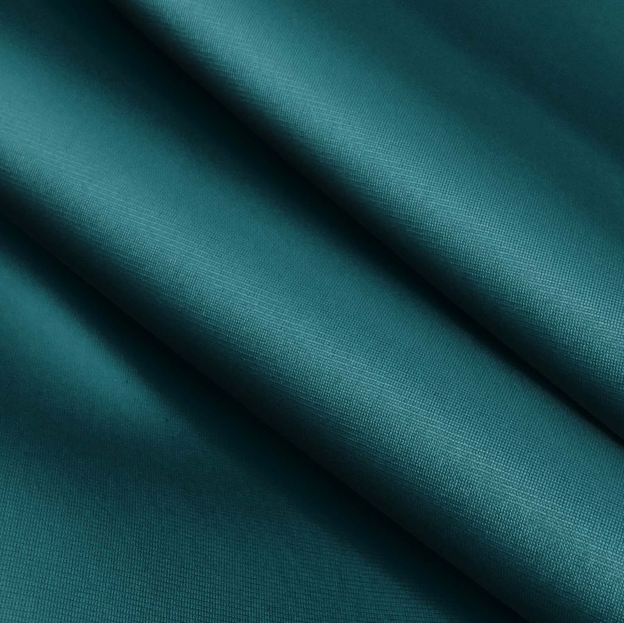 La tecnología de impresión utilizada en este tejido es la sublimación de poliéster. Esta técnica consiste en imprimir un diseño con tinta especial en papel transfer, que se coloca sobre la tela base y se somete a altas temperaturas y presión, de modo que la tinta se impregna en la fibra del tejido. Como resultado, se obtiene una imagen de alta calidad y durabilidad, en este caso, el color verde teal profundo.