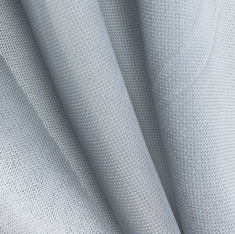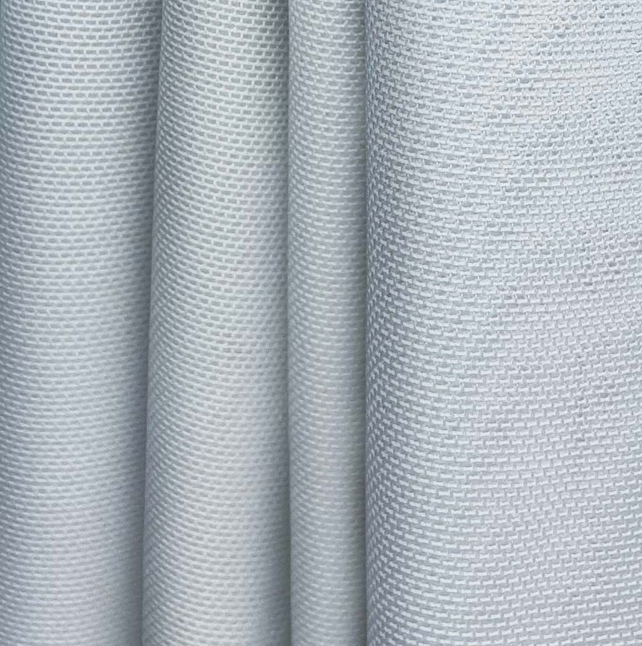 La tela base es el Tul Elástico - Oslo, con una composición de 94% poliéster y 6% elastano, con un gramaje de 80 gr/m2 y un ancho de 147 cm. El color liso impreso es de un gris-azulado, con una proporción de tinta cyan del 36, tinta magenta del 21, tinta yellow del 17, y tinta black del 1, en una escala CMYK del 36 21 17 1. Este color secundario es relajante y fresco, se asocia con la sabiduría, equilibrio y serenidad, y combina especialmente bien con tonos neutros como el blanco y el gris claro, así como con tonos más brillantes como el amarillo o el naranja. Es importante mencionar que la impresión se realiza a una sola cara por impresión digital textil.