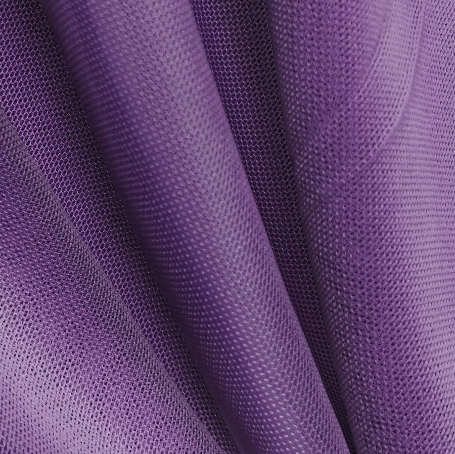La tela base es el Tul Elástico - Oslo, una tela de tul compuesta mayoritariamente por poliéster y elastano. Su gramaje se sitúa en los 80 gr/m2 y su ancho es de 147 cm. El color liso impreso es un Morado púrpura con una mezcla de tintas de Cyan, Magenta, Yellow y Black en un CMYK de 76 92 26 16. Este color secundario es vibrante y rico, aportando una sensación de elegancia y sofisticación a cualquier prenda confeccionada con este tejido. Combina perfectamente con otros tonos morados en diferentes intensidades, así como con grises, blancos o incluso dorados.